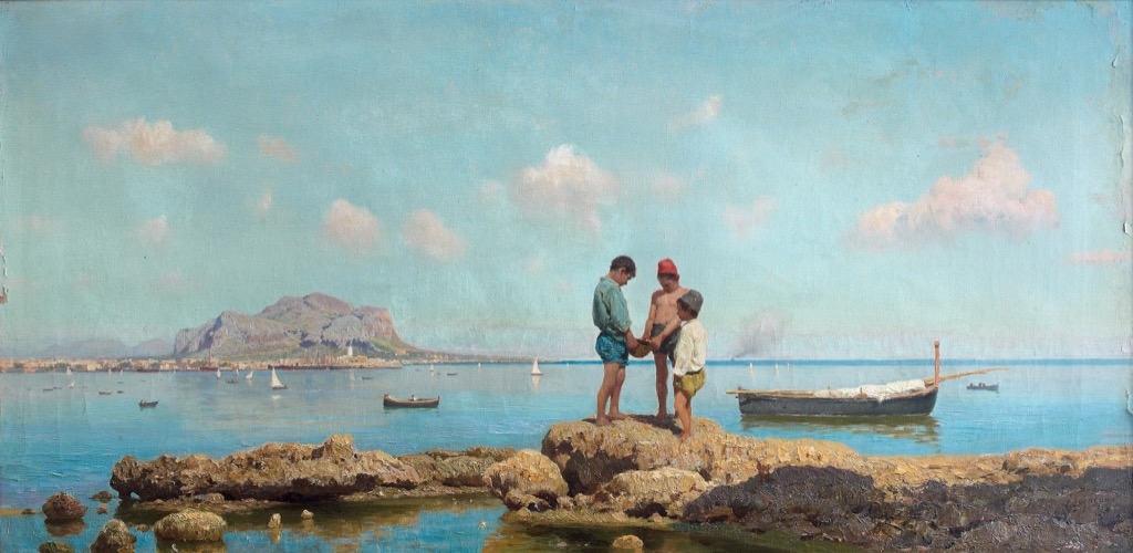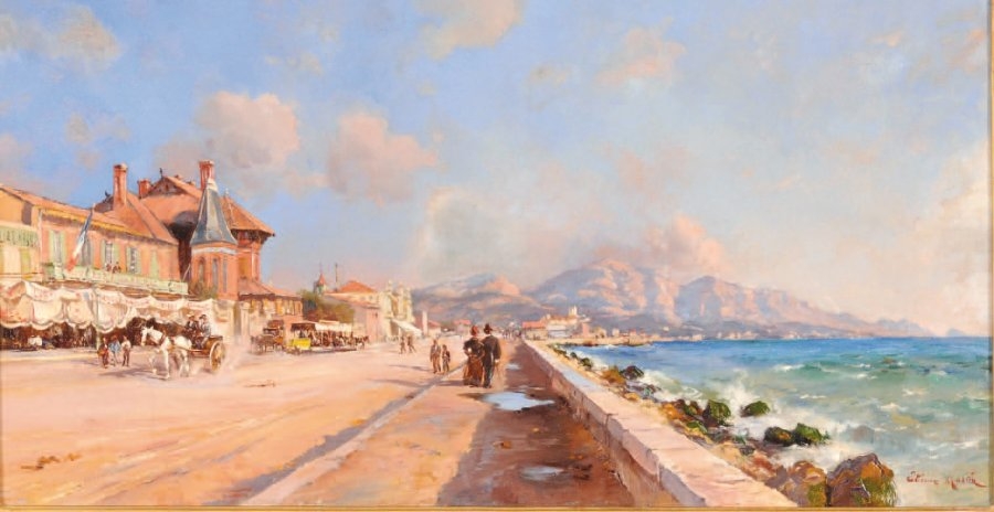 Eugène Antoine PRIEUR-BARDIN (1860-1905). « Pécheurs sur les rives du Bosphore, Istanbul ». Huile sur toile signée et datée 1902 en bas à droite. 62x92cm. Adjugé : 37 100€