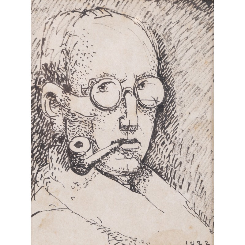 ESTIMATION: 1500/2000 - Marcel GROMAIRE (1892-1971) "Autoportrait aux lunettes". Encre sur papier datée 22 en bas à droite. A vue 14,5 x 11 cm. Vendue avec son certificat.