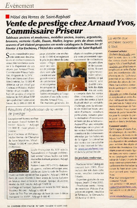 Var Matin 2006 : Tableaux et mobilier chez Me Yvos