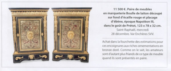Gazette Drouot Janvier 2006 : Paire de meubles Boulle