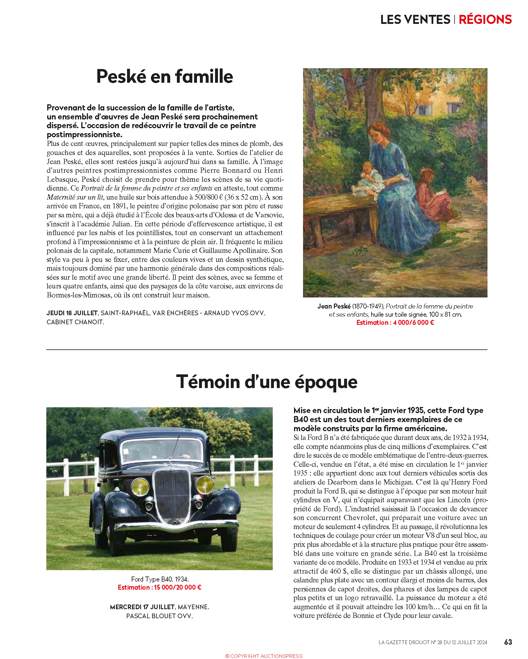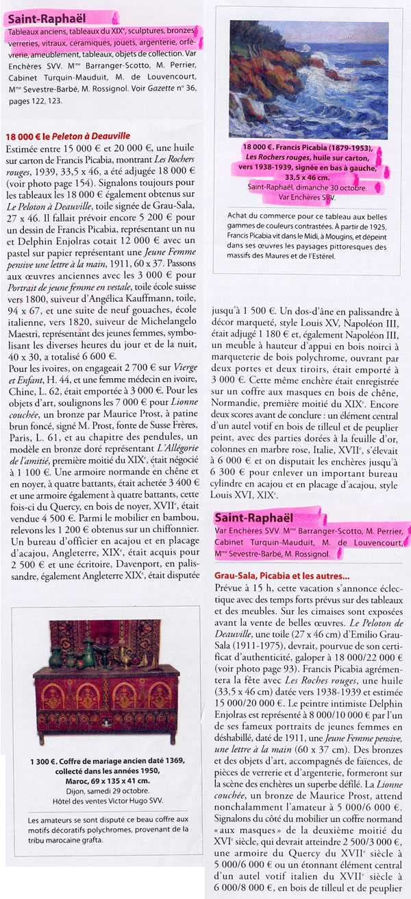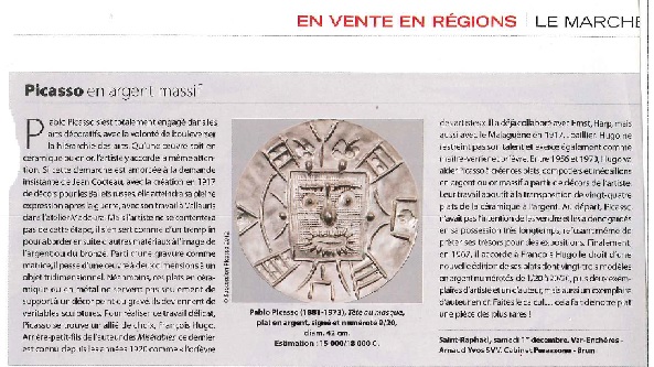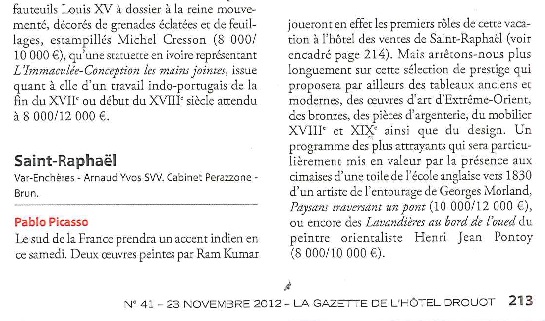 Gazette, 23 novembre 2012 : Vente en régions Picasso