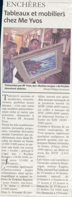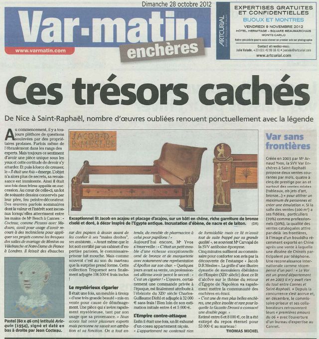 Var Matin, 28 Octobre 2010: De la vente aux enchères aux inventaires