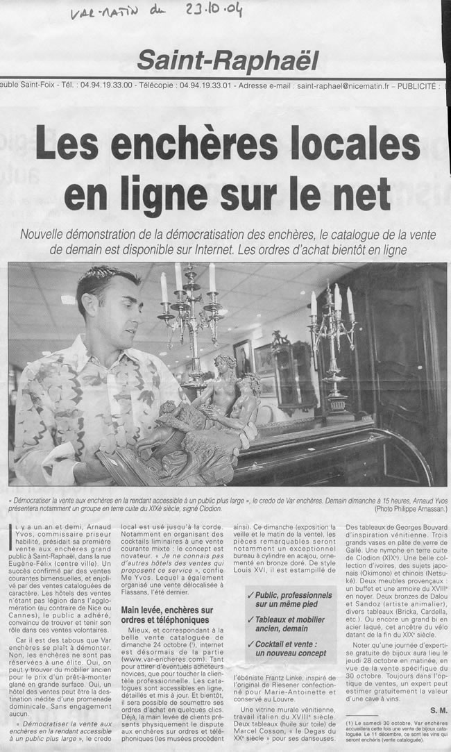 Var-Matin du 23/10/2004 : Les enchères locales en ligne sur le net