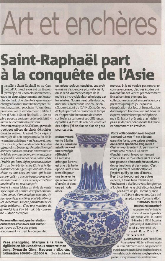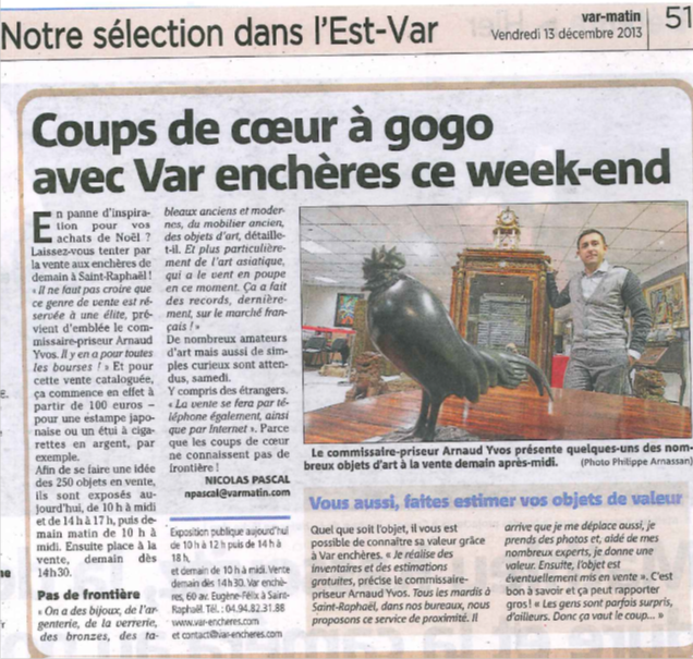 Var Matin, décembre 2013 : Coup de Coeur avec Var Enchères