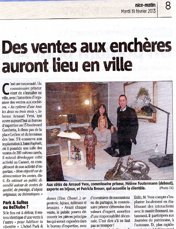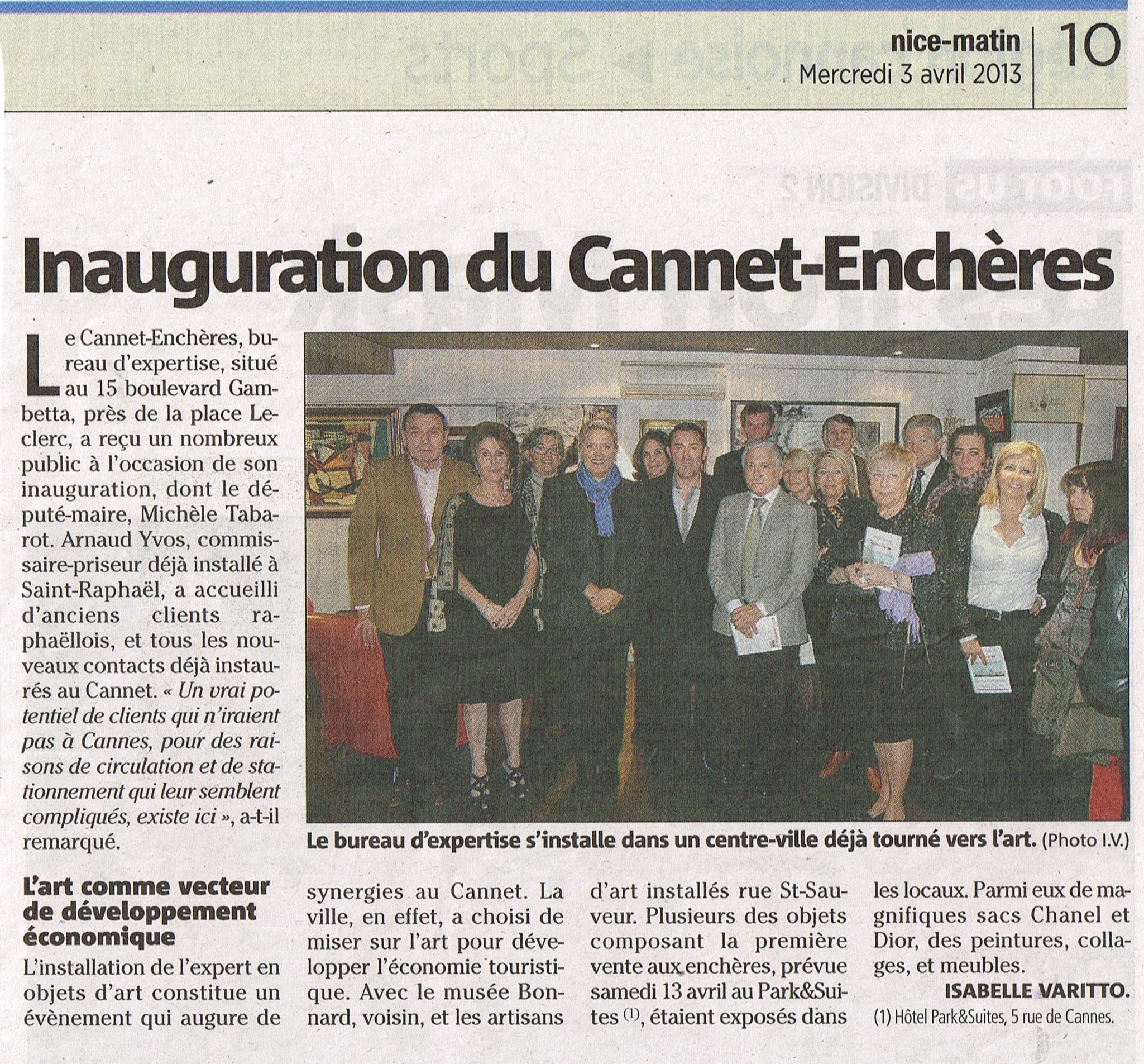 Nice Matin, 3 avril 2013 : Inauguration le Cannet Enchères