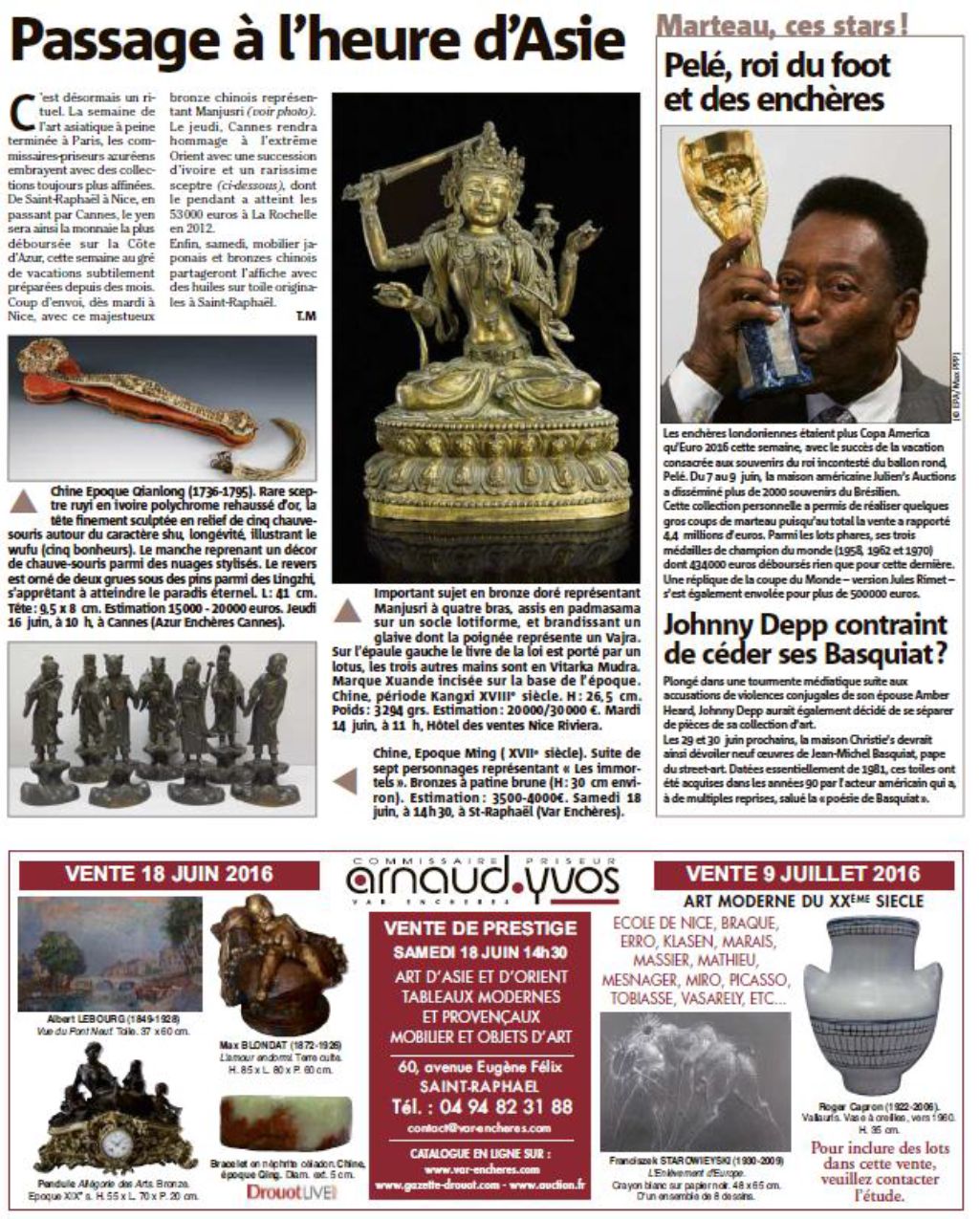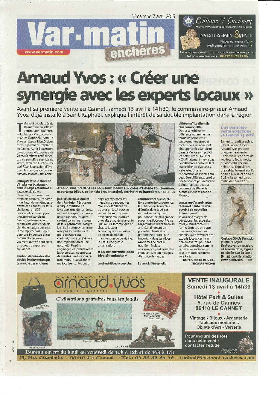 Gazette, 5 avril 2013 : Vente Inaugurale le Cannet Enchères