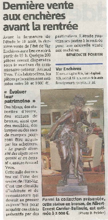 Var Matin, 27 juillet 2012 : Dernière vente aux enchères avant la rentrée