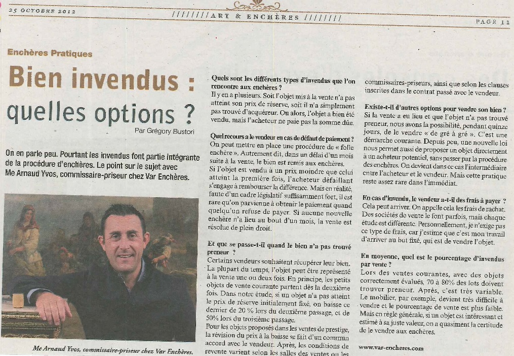 Arts et Enchères, 25 octobre 2012 : Bien invendus : Quelles options ?