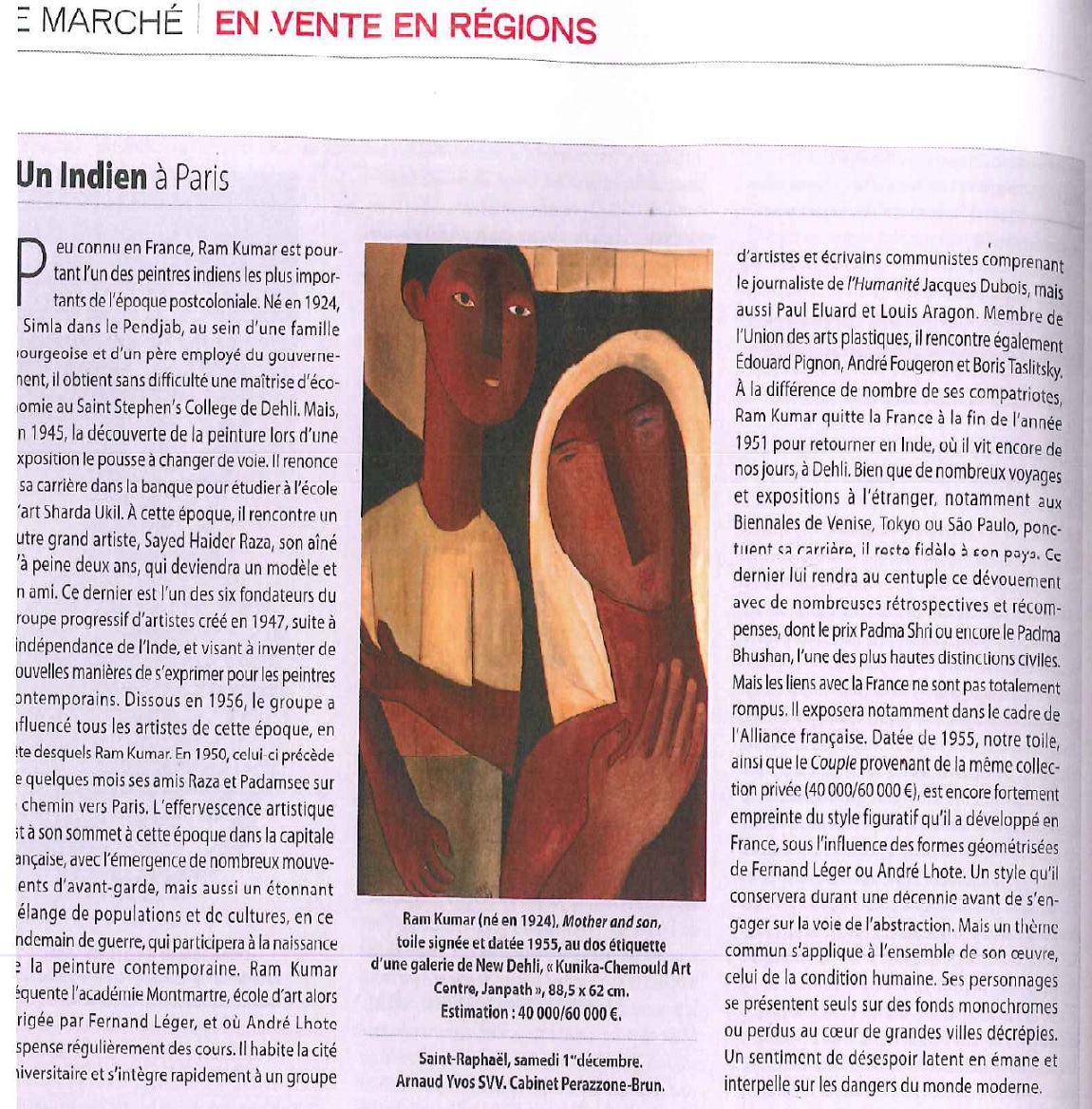 Gazette, 23 novembre 2012 : Vente en régions Ram Kumar