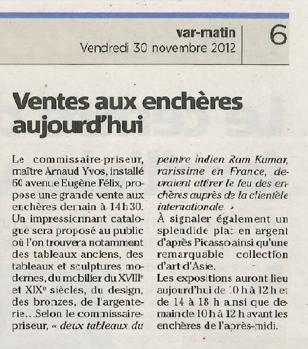 Var Matin, 30 novembre 2012 : Vente aux enchères aujourd’hui