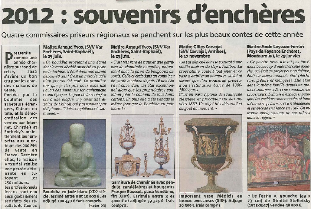 Nice Matin, 30 décembre 2012 : Souvenirs d’enchères