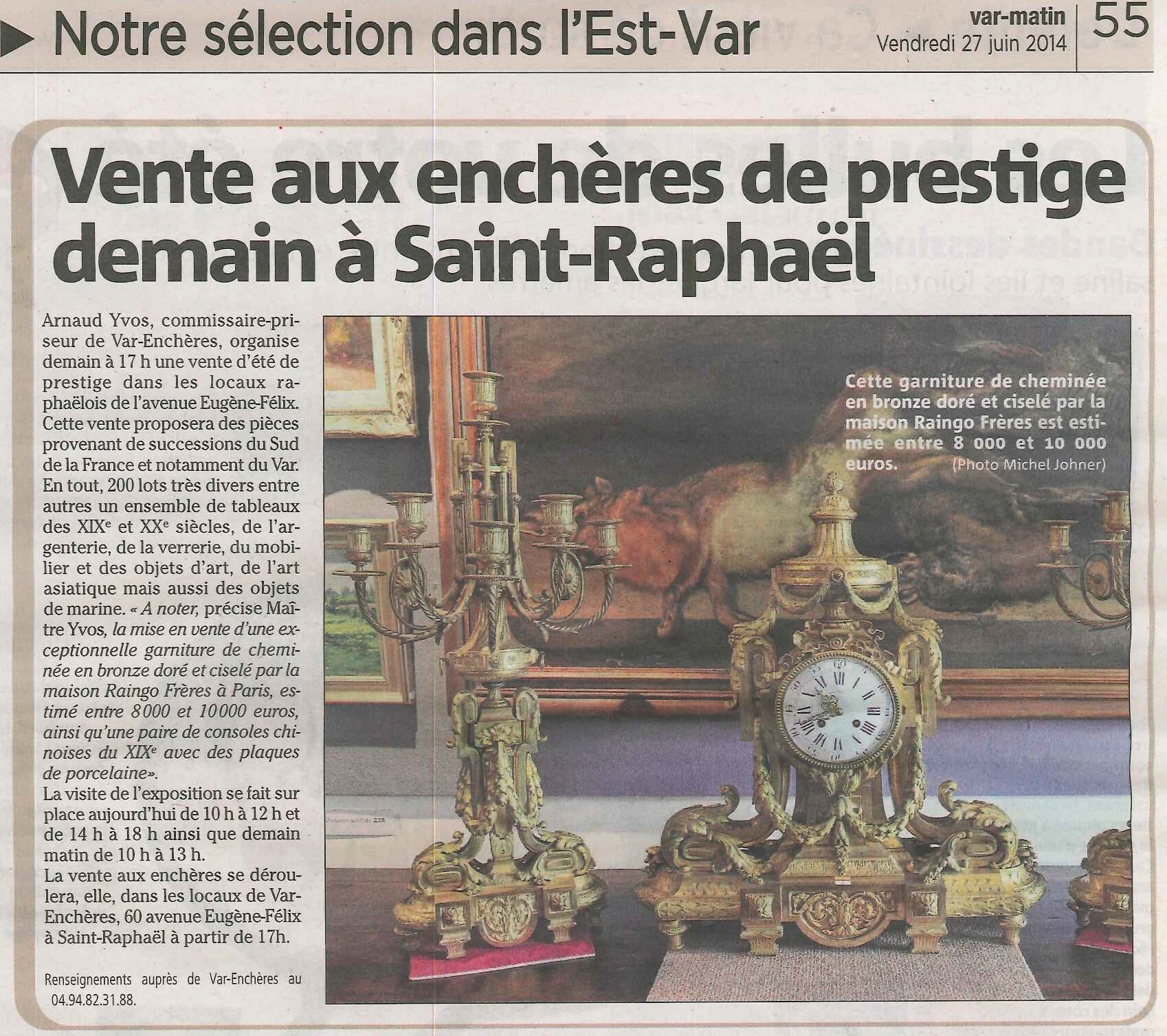 Var Matin, juin 2014 : Vente aux enchères de Prestige demain à St Raphaël