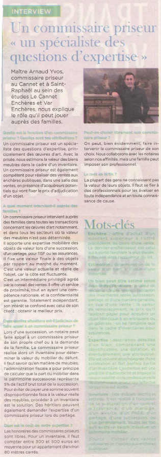 Nice Matin, 30 octobre 2014 : Un commissaire priseur : « un spécialiste des questions d’expertise »