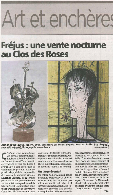 Nice Matin, 7 décembre 2016 : « Une vente aux enchères d’exception ce samedi »