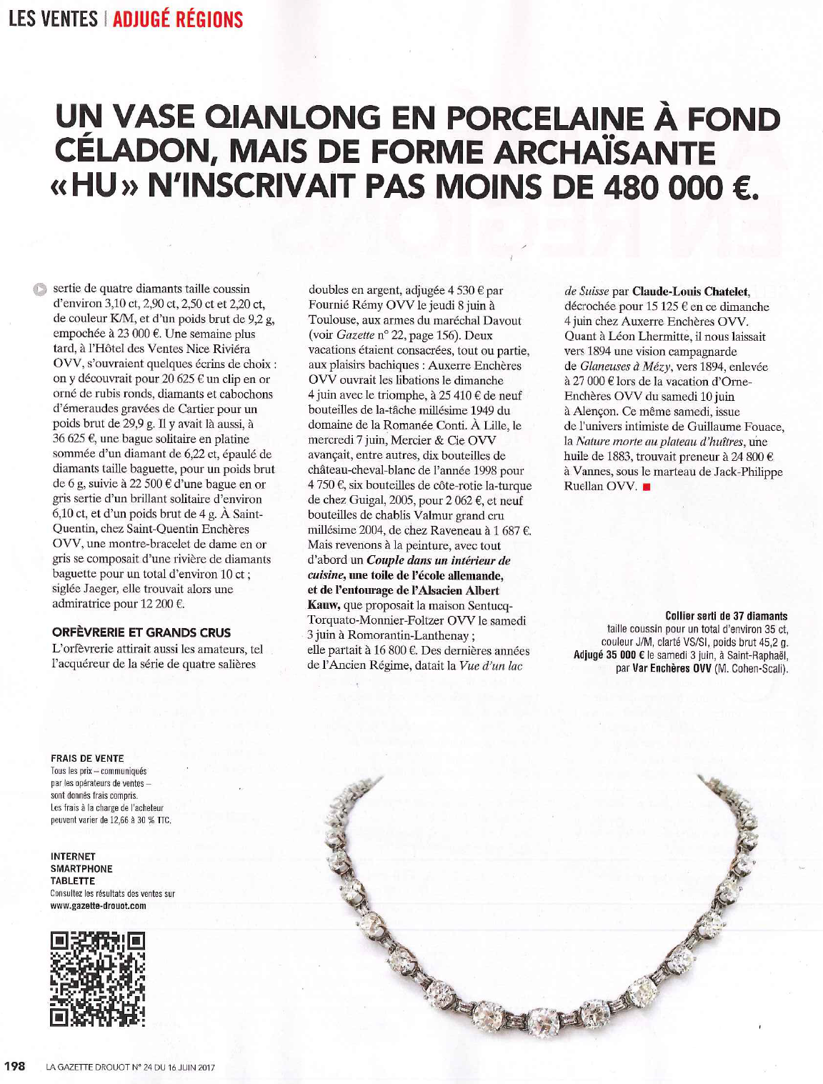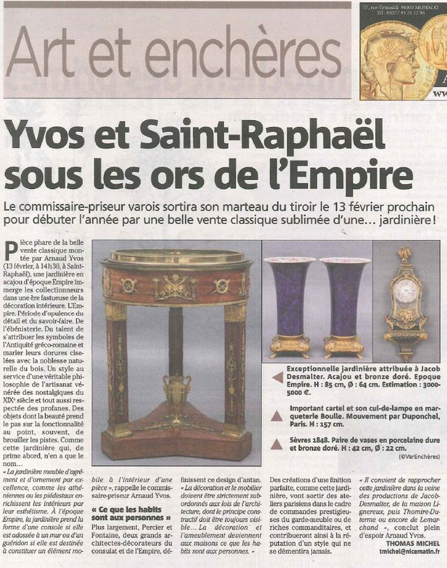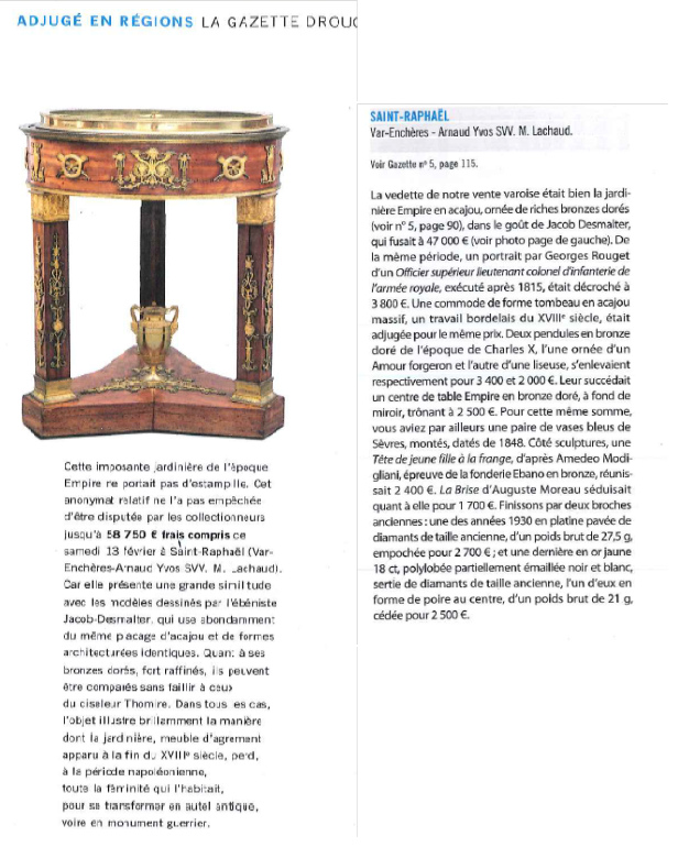 Gazette Drouot, février 2016 : « Jardinière Empire adjugée 58750€ »