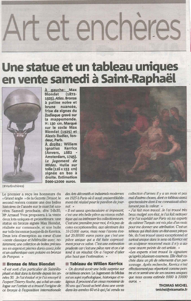 Arts & Enchères, avril 2016 : « Une statue et un tableau uniques en vente samedi à St Raphaël »