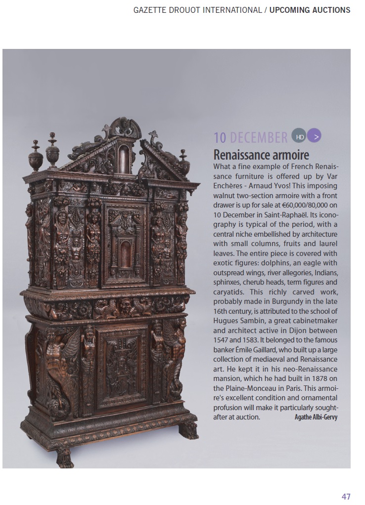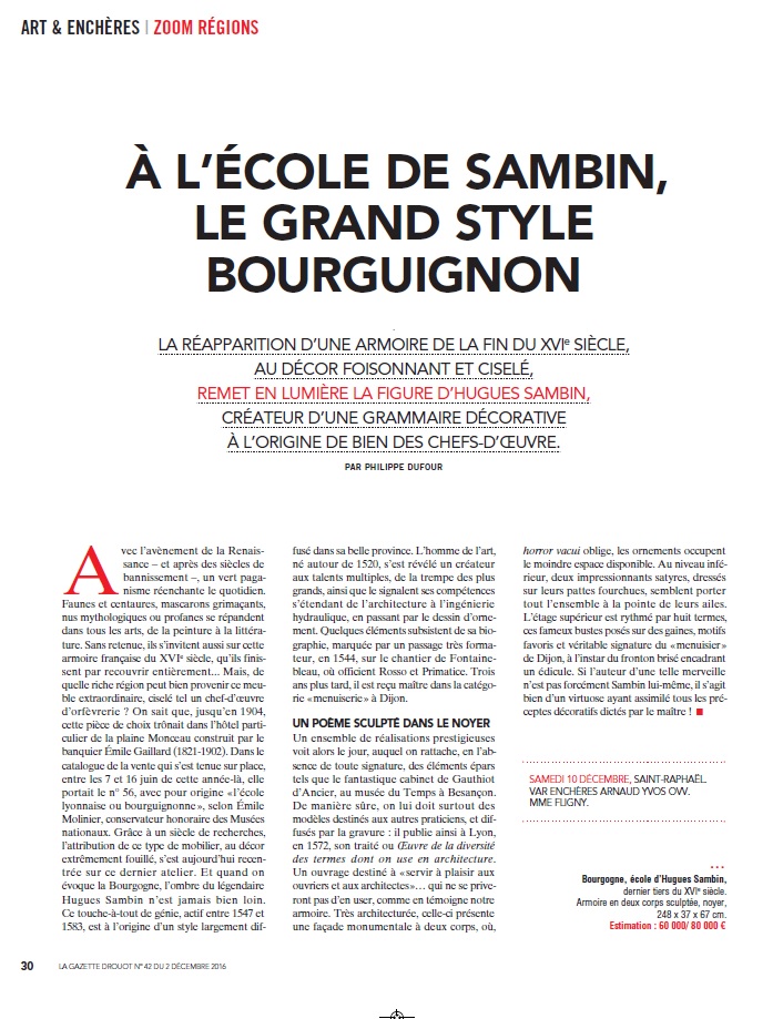 Gazette, décembre 2016 : A l’école de Sambin, le grand style bourguignon