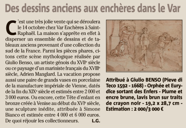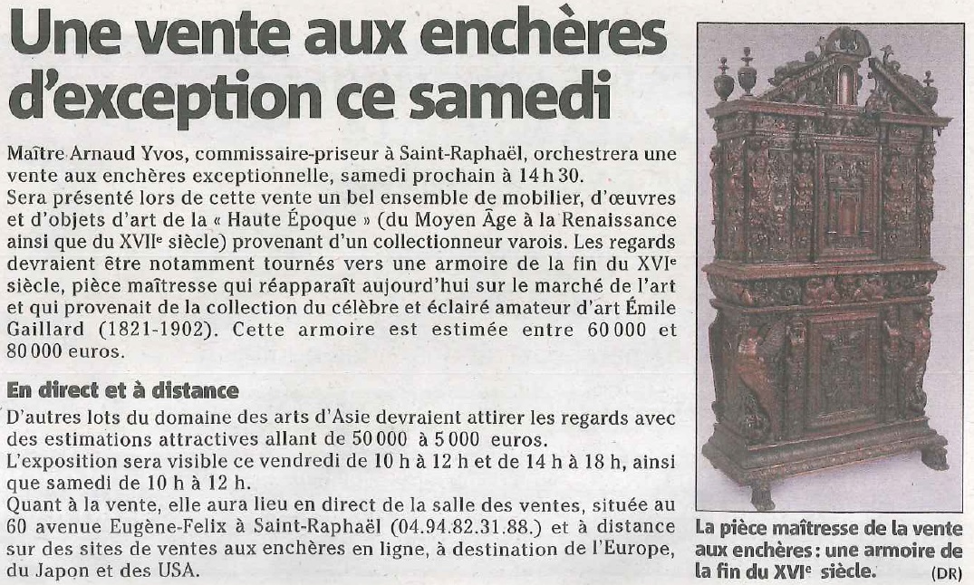 Var Matin, 22 Octobre 2009: Une vente aux enchères de prestige Dimanche