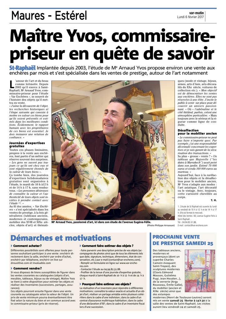 Var Matin, 6 février 2017 : « Maître Yvos, commissaire priseur en quête de savoir »