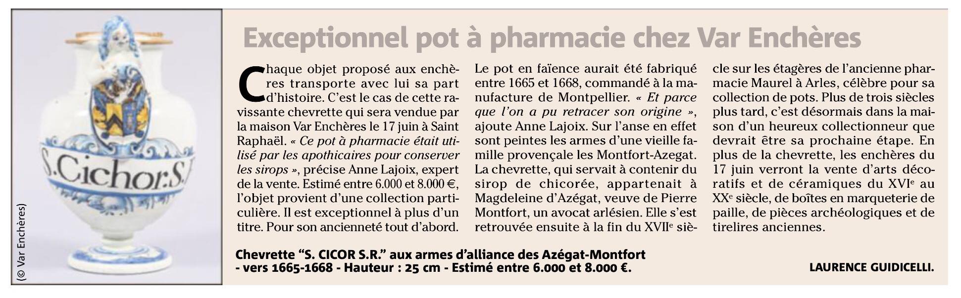 Arts & Enchères, juin 2017 : « Exceptionnel pot à pharmacie chez Var Enchères »