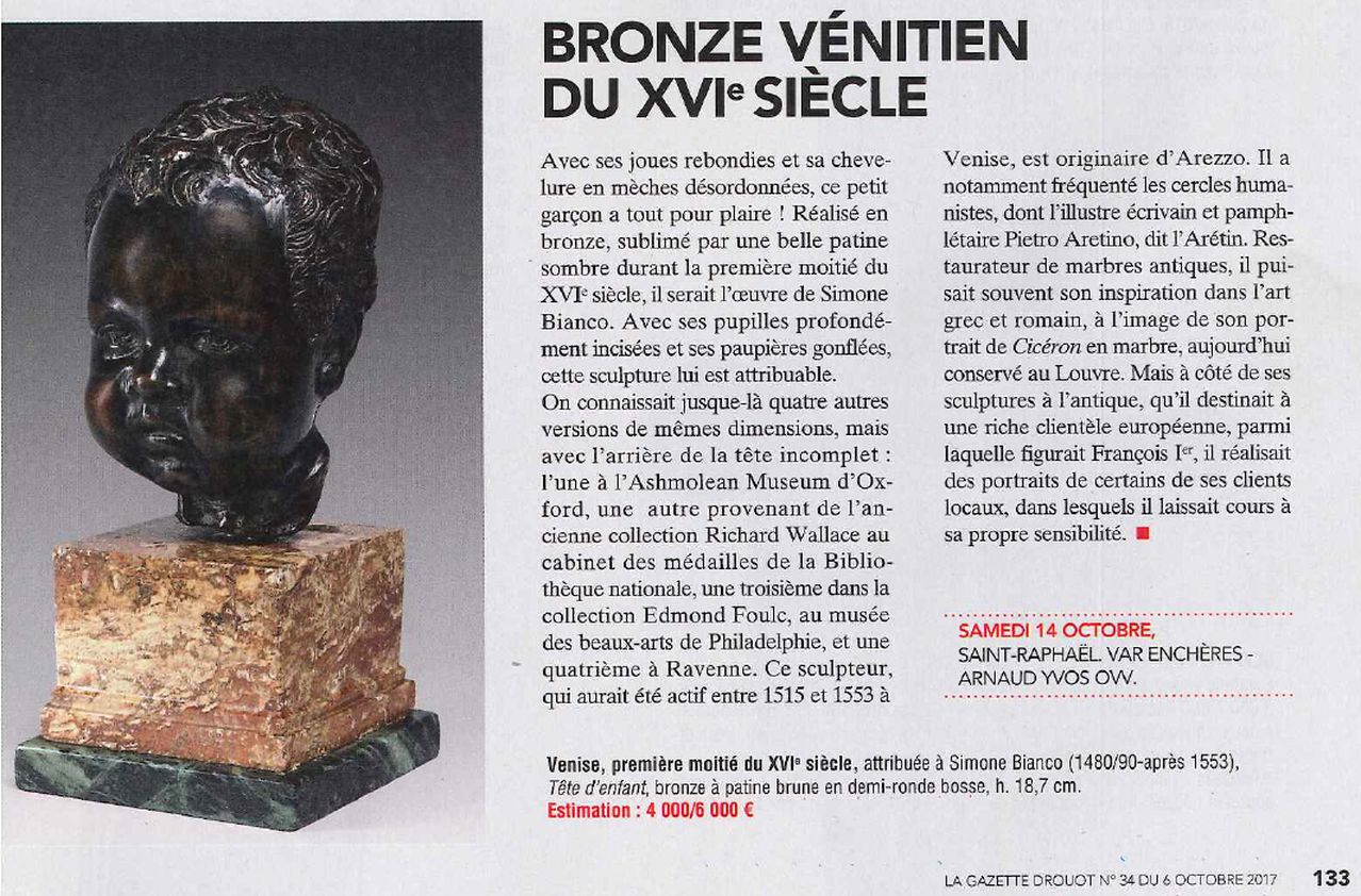 Gazette, 6 octobre 2017 : Bronze vénitien du XVI°siècle